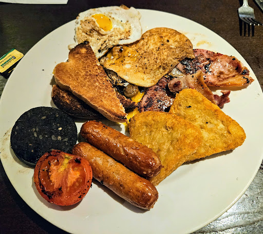 Read moreArrived and there was a large queue of people at the food ordering point. We were sat quickly but nobody explained what to do or gave us childrens menus so we had to get up and find someone. We went up to order and despite there now being no queue we waited for 5 mins as the staff ignored us. Our order was placed finally and we went and sat down. Shortly after a waiter came and told my mum they didn’t have fish so she couldn’t have the fish and chips. I asked, I have the fish supper which has fish so what about me. He then said yes it probably applies to you too then. My mum chose an alternative but there was nothing else I wanted so asked for a refund. I was told I needed to go up to a till so got up and walked towards the tills with the waiter, he then just walked off in to the kitchen and left me. I looked at the tills and there was an 8 person queue again. After waiting a while I spotted someone in a shirt that may be a manager, let’s hope not as didn’t act like one. I explained I needed a refund as there was no fish and the carvery chef spoke up saying “there must be”. He went in to the kitchen and the manager just carried on without me. A few minutes later the chef came out and said they’d found fish so could do our food. Now wondering if they ran to Aldi next door. The food finally arrived later and everything was over done. Our fish, my daughter’s steak, my dad’s gammon. The food was either average or poor. After eating the food my children and I all decided we would have a desert. We all wanted chocolate fudge cake. I went up and ordered, paid and then guess what!? A kitchen person came out and said they don’t have any fudge cake. I just said I’ll have a refund. At this point I’d given up. It took ten minutes to get a refund as they needed a manager but then the most unbelievable thing happened. Right in front of me the kitchen guy told the barman, do your self a favour and don’t accept desert orders after 8pm. The manager spoke up (at this point there was the kitchen guy, barman and manager). He said you can’t say that. Why the kitchen guy said. Because you can’t say that in front of me. Not you will accept orders until our food cut off, not we are here to serve the customer, not because your talking inappropriately in front of a customer! The whole experience was awful and I would suggest you avoid! No surprise at 8pm it was almost empty and by...