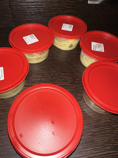 The corn was tasteless, soggy and cold. The beans were OK. The ice-cream had a plastic taste to it. They left it.