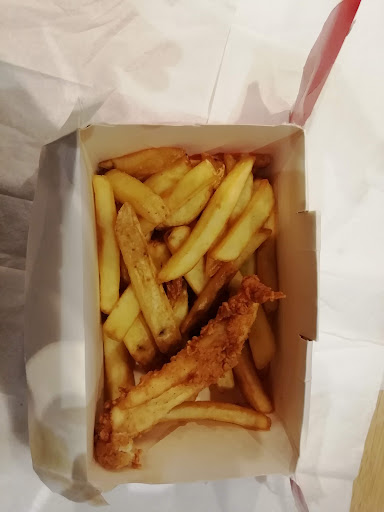 I opened my box of chicken and chips. There wasn't much in there but it took me a while to spot the chicken. One of my kids pointed it out to me. Have a look at the picture. It's the box before I touched anything in it.