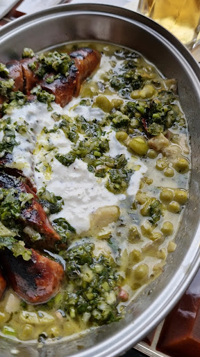 Dishes We Tucked Into: • Maldon Oyster with Dill Emulsion and Mignonette: These oysters were the bee’s knees—fresh and briny, with the dill emulsion and mignonette adding a smashing burst of flavour. • Fish Crackling with Sour Cream and Trout Roe: An absolute belter! The crispy fish skin paired with tangy sour cream and popping trout roe was a delightful surprise. • Lamb Belly Skewer with Puy Lentils, Fried Garlic, and Pickled Leeks: The lamb belly was cooked to perfection—tender and flavourful. The earthy lentils, crispy garlic, and zesty pickled leeks complemented it brilliantly. • Braised Ox Cheek with Pomme Purée and Pickled Red Cabbage: This dish was a proper treat. The ox cheek was melt-in-the-mouth, and the creamy pomme purée alongside the tangy pickled red cabbage made for a cracking combination. • Pommes Anna with Rarebit Sauce and Stout & Onion Purée: The Pommes Anna were spot on—crispy on the outside, tender inside. The rich rarebit sauce and stout & onion purée took it to the next level. • Fried Chicken with Buffalo Sauce, Smoked Buttermilk Ranch, and Gherkins: An absolute corker! The fried chicken was crispy and juicy, and the tangy buffalo sauce, smoky buttermilk ranch, and crunchy gherkins made it a standout dish.