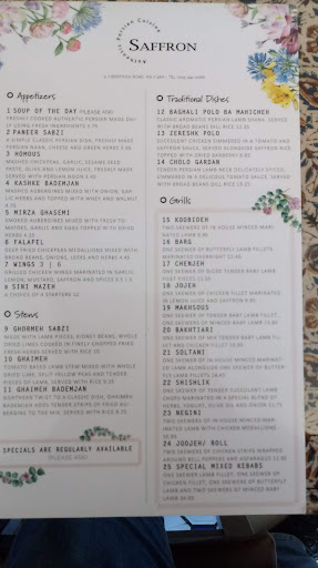 A proverbial hidden gem that I will visit again and again and recommend 1001%. I didn't even know the restaurant I knew had changed owners and become Saffron till I drove past it and decided straight away I wanted to sample the fare! Friendly, welcoming, well informed Nima fronts an aesthetically presented, clean and comfortable family run restaurant. Mum cooks and Nima is always on hand to offer advice, suggestions and the right amount of attention with what you would expect of Iranian hospitality. The food is temptingly presented and efficiently delivered from an extensive tantalising menu. We ordered saffron grilled chicken wings and lamb shank served with broad bean rice and a delicious yet simple salad of beetroot, tomato, red onion and lettuce in a with an added nan to try. The lamb was succulently soft and delicately flavoured and not oily at all. The nan perfectly crisp yet foldable. We ended the meal with a delcious Iranian black tea redolent with cardamom. Mum's cooking gave the food a real home made feel and Nima's extensive experience in the trade provided that fine dining experience at a fraction of the cost. Just one month in and the restaurant is already building up a loyal appreciative clientele. Don't let the location fool you. It is worth every moment and penny spent there. Real value for money. Highly...