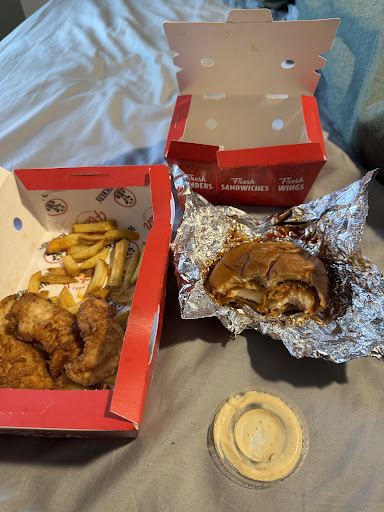 I am hugely disappointed with the quality of this and, frankly, quite annoyed. The burger was really disgusting and quickly became inedible; it was absolutely drowned in sauce and onions, to the point that the bun was peeling away when I tried to look inside of it (a soggy, disgusting mess). I bit into it and was shocked at how overpowering the BBQ and onion taste was, and didn't particularly enjoy it, but thinking "I've paid almost £11 for this alone" I took a second bite. I couldn't finish the second bite as I started retching from a foul taste I was experiencing; it was very clearly a dirty oil taste. The chips also had the same dirty, stale oil taste. I spat the second bite of the burger out into the bin, which is where the rest of the burger and the chips will go. All for £30. Shocking. The only things that actually tasted nice were the coating on the tenders and the sauces. But even the tenders were sorry excuses for fried tenders. They were limp and with the coating falling off like sludge onto the chips, and were more alike cheap frozen chicken goujons; small and soggy. The whole thing was also cold, which might've been a delivery issue rather than restaurant; but it arrived quickly and directly so I'm not sure about that. This would've been a poor experience from a cheap takeaway, that set me back something like £15. This was double the price and most of it is inedible. Really shocking. I rang the restaurant and spoke to them about it to the lady on the phone, and to her personal credit she was friendly and apologized. She sounded despondent, almost as though this happens often, and I could hear the sounds of laughter and messing around in the background which sounded like staff. I suspect the people in the kitchen, despite being given everything they need to succeed from the brand, are doing the opposite of that. Perhaps just a bad evening, who knows, but I am shocked with the...