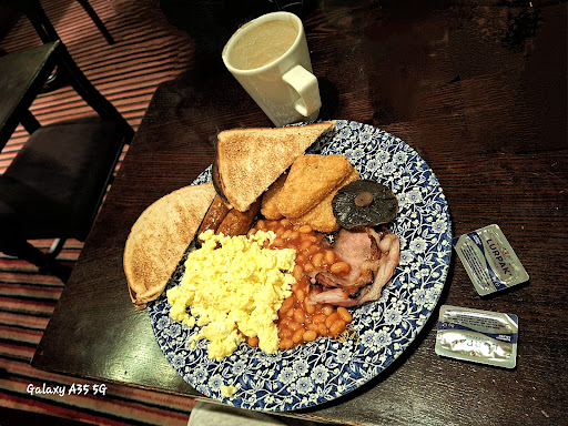 Read moreThis was my first visit to Wetherspoons. It's quite daunting to walk in to a large darkly decorated cafe. The bar is situated at the back so we had to walk through the many tables which were quite tightly packed together. The bar staff were friendly but didn't seem to be enjoying their jobs so had glum expressions. Half of the tables had not been cleared from previous customers, and the ones that had been cleared were not cleaned so we sat at a table with the previous customers drinks spillage on. We only had coffees which were not expensive at all for the area, Bulwell, and the seats were comfortable. There was plenty of choice of coffees available, and the coffee machine was simple and easy to navigate. This was around lunch time so many people were eating what looked to be appetizing foods. The food smelled great but as we didn't try any, I can't give any opinions on Wetherspoons food quality. It did smell rather nice though. I'm giving this a 4 star rating as although it's quite dark in decor (wood panelling all over and weird pictures on the walls) it had quite a relaxed atmosphere and is quite pleasant for an informal meet and eat. Wetherspoons is much nicer than most of the other cafes in Bulwell, and the only reason I didn't try their food is due to being quite ill today. I will return to appraise their foods in the near...