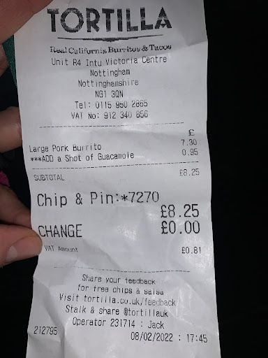 Ā Ā Ā Read moreSome of the staff working at Tortilla in Victoria centre need to be reviewed by the management because honestly who picked them? Food can be hit or miss, depends on who is making it. Some staff donāt even listen to what you say and put things in your order that you didnāt even ask for. Girl named āTā looked like she wasnāt being paid to be there, couldnāt even crack the slightest smile at the start of making the order, I genuinely got the feeling like as if I was forcing her to serve me. If you hate your job so much, maybe itās time to look for another one, I also work in customer service but I donāt have this negative attitude towards people. I thought maybe she was having a bad day but again, put stuff in my order I didnāt want, misheard me 10 times and didnāt bother to scan my loyalty card. On the other hand, this black girl (I didnāt get her name) working there is absolutely lovely! Very nice and friendly, always gets the order right and gets the proportions...