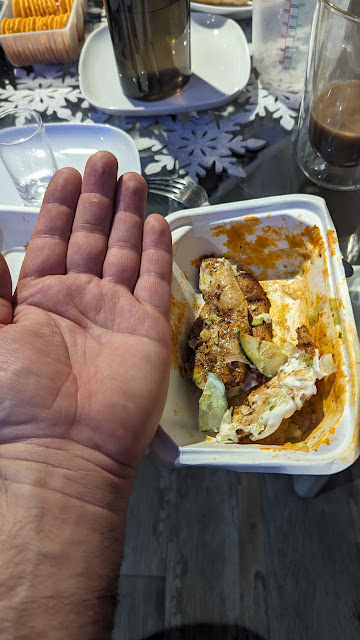 Have ordered from here before with no issues apart from a very greasy chicken wrap but we thought we'd give this another ago. Unfortunately it was a mess from start to finish. The delivery driver forgot our garlic bread and shrugged it off to then come back and give us the garlic bread as it had a different house number. The next thing was the chicken was not warm at all! It started tasting off. Then I find a longish black hair in my cheese garlic bread. I have bright red hair and my partner went nowhere near the cheese garlic bread as he can't stand cheese. Ridiculous! So annoyed. I'd have to think twice ordering from here again. The chips were nice and the coleslaw, that was it...