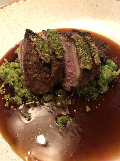 For the main, two of us opted for the lamb rump with potato dauphinoise. The other for a ribeye steak (£3.50 supplement). As per the picture, the lamb was beautifully cooked. Slightly pink (as advertised) and a tasty outer where the fat had been crisped up. The rosemary/red currant sauce worked so well with it. Dauphinoise was very tasty and better that it was served separately so it didn’t mix into the sauce.