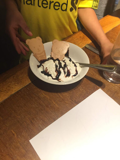 Food was very tasty, well prepared and presented and served well, but possibly they may have a capacity issue with preparing some item types in the kitchen. Despite knowing how many people were dining together; 2-3 meals from a party of 5-6 were significantly delayed (roughly 15-20 mins) when it didn't seem too busy (mid afternoon, Thursday). Once again though, I have to say the food was cooked to perfection, and served hot. I had a garlic mushroom soup starter (which was nothing short of exquisite), followed by crispy cod gujons with chips. The taste, texture, flavour and presentation - all of which was delightful and thoroughly enjoyed. My only (very minor criticism) would be that with my chosen dessert (melt in the middle chocolate pud); possibly it was heated for a fraction too long, so the middle had leaked out onto the serving plate, leaving it slightly drier than intended. I noticed the same was true for some of my friends who had the same item. It was still enjoyable though, and the accompanying scoop of vanilla ice cream, was of good quality and a great match with the hot pudding - though a slightly bigger scoop would mean I didn't have to worry I would run out 😂.