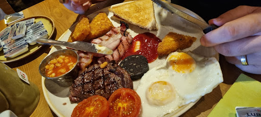 Read moreWalked in at 8:30 after trying to find somewhere to eat as a family after a day of spending time together. Noticed they didnt finish serving food until 9pm which worked out perfect for us, apart from the meal was far from perfectâŚ. From the second we walked in we were shown to the table and the waitress just threw the menus down and didnt come back to ask for drinks. I approached the bar and she did inform me it was waitress service. The only decent member of staff in there was our waiter. He took our order and checked it over. 3 of the party had starters. Upon approaching the salad bar all we could hear was the disgusting language from the chefs and their disapproval of a table of 7 coming in at 8:30 and not only ordering mains but also starters! (It was only 3 starters that were ordered off the 2 course evening menu) I would like to say its the first time we have over heard disgusting behaviour from the chefs but it is not⌠A member of the party asked for some lettuce as it had ran out and what followed was an eye roll from the waitress. 40 minutes later our main meals arrived much to our confusion where were the starters we had ordered? The young girl who brought the food out was quite abrupt and said we were just told to bring out the mains. To our suprise 2 Gammons we had ordered exactly the same came out different. Neither had pineapple and only one was missing egg. We were accused of ordering it incorrectly which we did not, and they later told us they just didnt have any pineapple and we would need to go to the salad bar to get it. We asked the only decent member of floor staff (the guy who originally served us) where the starters were and he was just as confused. He later brought them out but obviously everyone was overwhelmed with the food infront of them and didnt want to eat the starters anymore. We even over heard the chefs again speaking negatively about our table saying we were being pathetic because we asked for the egg that was missing off one of our meals. We asked to speak to a manager and she did take items off of the bill which was generous. HOWEVER upon our complaints all she did was try to pin the blame on us and our original waiter who had not done anything wrong. She tried to make excuses for the chefâs behaviour and then tried to tell us that we didnt order them as starters which we did! We even heard the chefs moaning that we did order starters! The manager herself said she went to chase up a dessert we had ordered. Which again 35 minutes later had not arrived. By this point we had enough and asked for the bill. It was disgusting to hear the manager throwing her own waiter under the bus when he had done nothing wrong at all. This place needs to take a strong re-evaluation of their kitchen staff and management team. Yes we were compensated with the bill but it was not the point. Management should not use the excuse of we came in late into the evening. My simple response to that is donât advertise that late or you should have turned us away when we got there. The only appreciation we have is for the young girl on the bar and the young guy who...