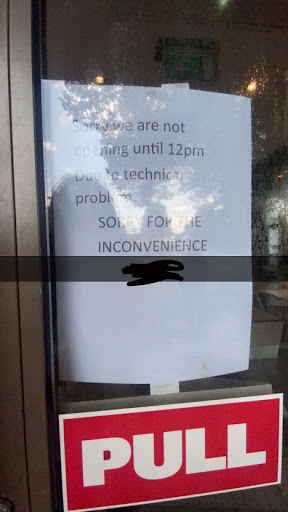I get that there may be issues, which, to an outsider looking in, may not be obvious, but the restaurant is clearly aware, or they wouldn't have put up the sign, but did no one think to instruct the staff to acknowledge it and apologise?