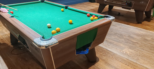 There are 2 pool tables - both of... below average quality (spills on the cloth and lean too) and it's Ben known for there to be not enough cues and there is rarely chalk available. Darts board is of average quality however. [Side note, the pool table photo was from a few months ago when the cloth was recently replaced.)
