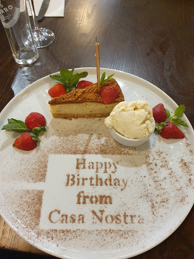 We decided to go here as we wanted to celebrate our 45th wedding anniversary together with a meal out. Food was divine and I'm the most fussy person when it comes to eating out! Atmosphere was great and I'm not surprised it was so busy with the class of food and service; very attentive and friendly. I had the linguine salmone, hubby had the meatballs, both were delicious! We were naughty and had a dessert which was also lovely, I had the chocolate fondant and hubby had the Biscoff cheesecake. Food was fabulously presented and very tasty, no complaints; in fact our compliments to the chef! Will definitely be recommending to family and friends. A lovely touch was the presentation of a bottle of Prosecco on the house to celebrate our anniversary. Very kind. Thank you Casa Nostra for great food, great service and a lovely dining experience. 10/10. We had a lovely evening. Looking forward to our next meal with you.