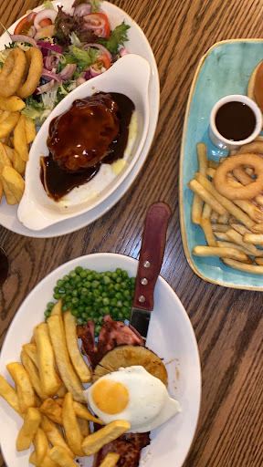 Read moreI'm not bothered about food and neither are my kids. We all eat anything but the food was dibolacal. My boys left more than half a plate of food, saying that their potatoes were dry. We were also very disappointed that there were no stuffing on the Sunday dinner. They also left the chicken as it was too dry for them to eat, tough and tasteless. I had the same as my boys Chicken Sunday roast and I must say it was awful. The only nice things about it was the mash and the Yorkshire pudding. I Struggled to eat the rest and like I said I'm not at all a fussy eater. My partner had a mixed grill and that was even worse. The sausages tasted boiled. I tried them myself and wanted to spit them out. They were disgusting, don't know how he ate them. The gammon was tough and very salty. The steak he asked for a medium and it was pretty much blue. Chicken was drier than the ones that we were served. Staff: none of them looked happy at all, looked like they were at a funeral parlour and the beer tastes really cheap. The gents toilets were flooded which can't be helped but the disabled toilets which were the alternative option were gross. There was mould growing on the floor under the soap dispenser and just filthy in all other aspects. Won't be going back again which is a shame as has some good pointers to the place I.e sports, Sky, well catered for when it came...