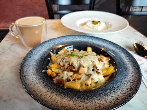 I polished off the Desi breakfast pretty quickly as I was fairly hungry, and browsed the WiFi for a while before it was drawing close to lunch time. I then ordered the Miljul Speciality Karak Chai, some Cheesy Keema Fries, and a Rasmalai flavoured cake. Everything was made to order so there was about a 10 minute wait, as I asked for everything altogether.