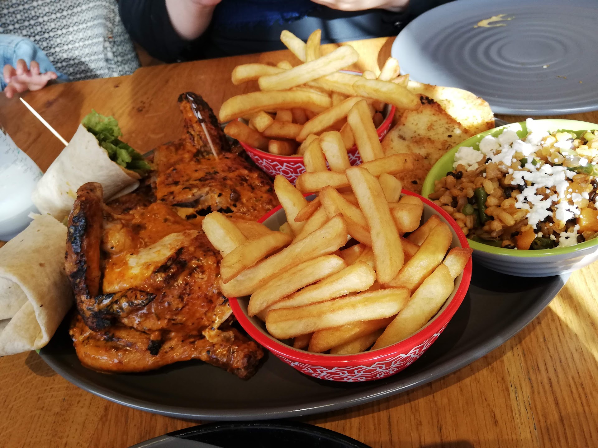 Read moreWent on bank holiday with my autistic son. It was quite busy and they did warn us there was a bit of a wait in food, my son had his heart set on Nandos so we waited. He got a bit impatient and started stimming which he has no control over nor do I. The woman behind me came over and agresivley demanded I make my child quiet. My son cried, which was louder than the noise he was making to begin with. Once I'd calmed him down we needed more drinks but he wouldn't let me leave him to order at the bar ( we had to order their due to allergies) I asked the waitress if I could order at table and her bring the card machine, I explained why and she nearly cried for us, she brought our drinks and not long after a manager (ashleigh) came over and apologies to my son for the other customers behaviour, she took him to get frozen yoghurt and "made his heart happy" wasn't Nandos problem to fix but they went out their way to restore my sons faith in humanity and I'm so...