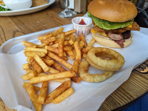 Firstly the front of house staff are super friendly and attentive without being overly so. Drinks Service from ordering via app was spot on and we got what we ordered exactly. The food service came out some 20 mins later considering that we had arrived at around 5.45pm was about right. My wife had ordered the Steak and Ale Pie which for us when we eat in a Greene King pub is our go to dish as it's always really nice and tasty. And according to my wife it was good. However I fancied a burger and ordered one from the Stack menu, I really should have gone with the Pie ! This burger was a huge disappointment and a total waste of money, now I am a type 1 Diabetic and I had already given myself my two Insulin shots that I take in the evening and as this was a Carb loaded meal I had given myself extra rapid acting insulin to cover off this meal. So I had to eat what I could and wow it was bad stone cold and partly cooked onion rings over cooked and dry and completely tasteless Beef Patties and chips that looked like they had been scraped from the bottom of the fryer. As I said I ate what I could as I had too. However I left a decent amount on the plate, and when our server returned she asked if everything was ok, no was my reply I explained all of the above, and the response to this was oh I am really sorry would you like a drink on the house ?? No was my reply, at no point did she offer to put right my woeful food and took my plate away. Now to be fair when she came back to take my wife's thoroughly enjoyed Pie plate away, she did apologize again, however again at no point did she offer to make right my half left meal. So will we visit a Greene King again ? Yes because we will stick to what we know, would we revisit this particular Greene King pub...... It's a resounding no from me, shame really as...