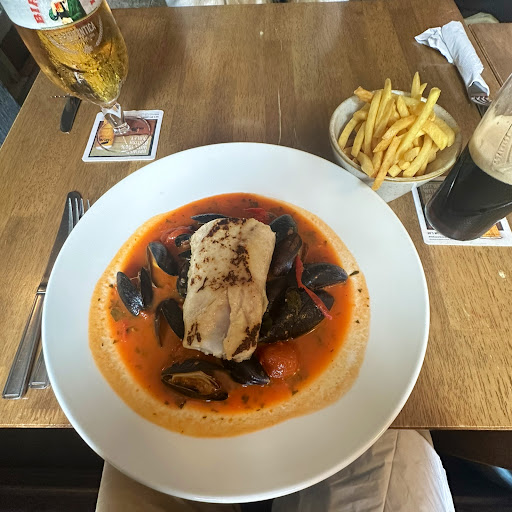 We met a friend here for lunch as it was near to them. Upon arrival it looks like a really nice little pub from the outside. Inside there is hand sanitiser for guests and the pub is currenty operating a table service. The pub inside is very cosy and the atmosphere relaxing. I would definitely recommend booking a table. We had drinks to start, the choices were good and the drinks themselves Crisp and refreshing. Our food order shortly followed and it wasn't long to wait before we had it. Our starters were the fish patè and the liver patè with caramelised onions on toasted bread. Lip smackingly delicious! For mains we ordered fish in beer batter and chips. The fish was crispy on the outside and well cooked. The fish was cooked perfectly and the chips were chunky and well cooked. The serlion steak was cooked as requested and the cheese and onion pie was delicious. Deserts were cheesecake and sticky toffee pudding. All were cooked well and presented well. The ice cream served with the sticky toffee was also delicious (especially the caramel ice cream!) The only thing I can say about the food served here was the main courses are big! Not always a bad thing but I bet between the 3 of us there was a portion of chips wasted, and we really tried! Overall a really pleasant afternoon and would have liked to have spent...