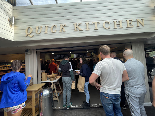 9am on a Saturday morning and it was massively understaffed - a long queue for getting breakfast with 2 serving plated breakfasts and 1 on the other side for breakfast rolls. 10 mins to wait to get our 2 plated breakfasts only to discover there was only one person on checkout who was also making drinks for everyone and a further 10 mins holding our trays in a line of 20 people. Nearly £30 for 2 cold breakfasts by the time that we got to sit down in a practically...