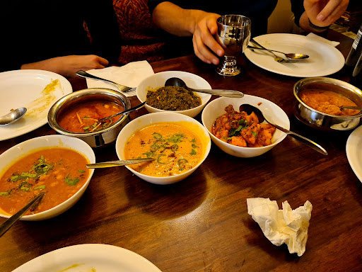 It might a bit further away from city centre and it would be easier to just get the food deliveroo'd , but please do go in for Indian food served the Indian Dhabha way - Big plates of tasty main dishes :) This is exactly how we do it in India :P