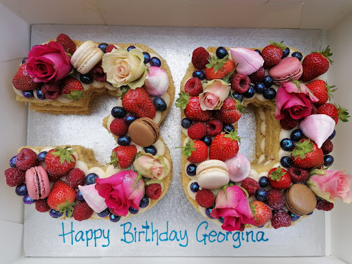 Julia could not have been more helpful and amenable to my requests and exceeded expectations when I arrived to pick up this masterpiece. Not only did it fulfil my brief, it looked exceptional and tasted even better :) The cake was light and fluffy and the buttercream perfect (not too sweet) which was great as you had the sweetness of the fresh fruit, macarons and meringue kisses. Despite being out for most of the day in the sun during our surprise birthday picnic, it was still fresh and tasted just as delicious a few days later!