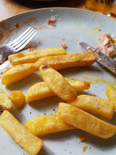 Read moreOk this is being generous and it gets this because actually , and I hope he doesn't mind me saying this, the elder gentleman serving behind the bar and also running food was amazing. Smiling always chatty and informative. So five stars to him. The food gets 2 stars. My eggs on ham and eggs were stone cold. My guess is they were pre cooked and then not reheated properly. If you cant do fresh eggs to order at least make sure you heat them up properly to serve. The onion gravy was awful on the pie. I'm an ex chef and that wasnt good. I suggest buying some bisto granules if you cant make a proper gravy at least that would be better than the watery brown stuff with a onion that had given up on life. The so called triple cooked chips resembled the same straight cut chips I get from tesco. The were not triple cooked. See photo. No wheelchair access toilets was disappointing in this day and age. I'm guessing this is a tourist trap but it's sad that people all over the globe think this is true representation of British cuisine..it isnt. Oh and when we arrived we were told we couldn't order food till 12.30 because chef was late. I almost wish he hadn't turned up and saved us from a very below average meal. The ham was nice though this was bought in. Also the manager could probably do with learning how to be a little less intimidating and maybe smile once. He acted like he was running a rough east end pub in London not a historic...