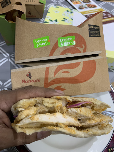 Now to the food. The takeaway was awful. I’ve added a pic of the grilled chicken in pita that I had. It was as dry as a desert. I’ve obviously been to many Nando’s before, but the food at this restaurant was not...