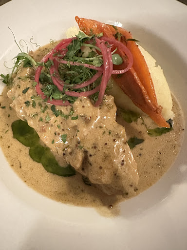 If the previous course was akin to Swan Lake; graceful, delicate, and elegant the main course is like La Tosca. Intense, unapologetic and deep in its flavours. I had the rabbit leg that was slow braised served with pommes puree, glazed carrots and Dijon mustard sauce. The decadent mustard sauce was full bodied and elevated the nuttiness of the tender rabbit. The carrots harmoniously brought sparks of sharp sweetness along with pickled onions that counteracted the bombardment of umami that gushed from the rest of the dish. This was course of triumph, braisant in its attitude and construct.