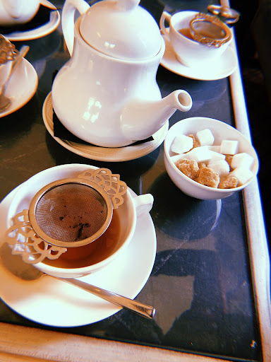 We ordered 6 orders of High tea for I people but it was way too much food. Considering we haven't eating lunch this was a late lunch or dinner. The scones are the best! Sweet butter and jam in a scone is divine. I'm not going to say amazing because I am resisting the urge. The scones hands down beat any butter milk southern biscuit I have had in America. This was shocking considering most English food in my opinion lack flavor and spice. Everything is mostly bread, basic entree and some form of dessert. Personally I prefer focus on the main course with dessert and bread optional.