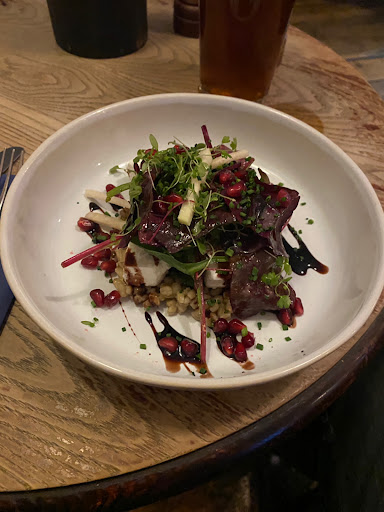 Read moreIt's fortunate to have a fine pub right on my doorstep. (22 paces to; 50-60 paces return.) The menu signature dish has been the onglet steak in the past, but (depending on which chef is on, which day) the other plates are mostly excellent. Gaffers will tell you the beer's expensive, but then it will be if your intention is to go for a drinks' session. Otherwise, as a social watering hole, quaffing just a large wine, or g&t, or a coffee even, it's brilliant. The ambiance inside is convenable for writing, playing board games, doing craftwork and occasionally listening to music. (Morris Men do their thing outside, closing off the street, come May.) Conversation is not intruded upon by background music, or large screen football games, or a pool table, or arcade machines. No, this is a PROPER pub. If the weather suits, then take your drink out onto the towpath and enjoy the aspects of Osney Isle. At this particular corner, the setting seems oft like a television stage set; a Gile's cartoon, with our cat rolling in the middle of the road of Victorian terraced houses, in the near distance. Whilst outside the Punter, people pet dogs and converse beside the boats and benches, supping their...