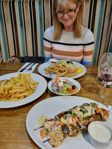 Read moreService friendly. Food basically good. We ordered chicken Souvlaki with rice (£15.00 - reasonable). We got chips instead of rice. We also ordered Stifado (described as being like a curry!) and served without the Greek Salad (£19.00). The sauce which had an unnatural hot taste to the back of the throat, tasted like it came out of a cheap tin. The meat was good quality and was cooked well. Dessert: Baklava. I was bought up up Turkey and this was not the Baklava I know. Clearly out of a packet and heated up in a microwave. Very hard, very dense and could not cut it with the teaspoon I was given! Not good. Drinks. We ordered a spritzer (charged 90p for soda) and a bottle of Mythos beer. Yes, it got us out of the rain at 9.00pm in the evening, the place was empty apart from a couple of girls who were talking very loudly about work, inappropriate work colleagues....quite revealing! Maybe the staff were just having an off night, being quite quiet, but they took their eye off producing the correct food to put on plates. Just a bit lazy. I don't think we will be going back....unless it's heaving with rain and we are sheltering in their...