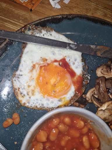 Read moreGood grief! Where do I begin? Ordering here was simple, using either of the two touchscreens in the entrance. However, about 75% of the menu was unavailable. I had large (hardly) cod &chips with optionally added beans (possibly one whole tablespoon of cold beans). Wife had ham, egg and cold chips (no option to add beans, cold or otherwise). Daughter one had same as me, but got a pot of beans (cold of course) Daughter two, Veggie sausages, mash (aunt Bessie), Yorkshire pudding & gravy. We also ordered cheesy chips (just wait til you hear about these!) We found an empty booth (which we had to clean ourselves before we sat). Cutlery is kept near the counter in handy-dandy stainless pots, that are half filled with cold dishwasher water. So you get to do some drying up as well! (It's like being at home!)