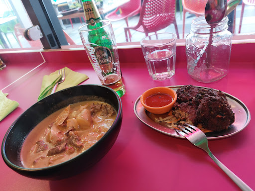 Overall, I did not enjoy my experience at this restaurant. It is an aesthetic mess. I don't think this place knows what sort of vibe it's trying for, being brightly coloured, covered in a wide variety of knick knacks, and having loud music, none of which worked well together. Our waitress got part of our order wrong, and kept returning to the table to inform us that they were out of several of the dishes we'd ordered. We were sat right next to the bar, and it took a long time for drinks to arrive. It must have taken 10 minutes before the staff made our drinks, after seemingly doing nothing before hand. I would not recommend this restaurant to vegetarians, with several dishes marked as vegetarian despite containing oyster sauce (and while it is possible to get vegetarian oyster sauce, this was not specified), and little variety of substantial food. I ordered stir fried bean sprouts, which came with tofu, but it had little flavour, and wasn't filling. I am surprised that there weren't any signs to indicate how the seafood was sourced for many of their dishes - I would hope that seafood here would be local, and sustainably caught, but I just don't know. And the worst offence this restaurant committed - their disposable chop sticks were packaged in SINGLE USE plastic. I have never been to a restaurant that wraps their chop sticks in plastic, and I am honestly disgusted. There is just no need for this. My seafood eating friends seemed to enjoy their food though, so this place is probably okay if you...