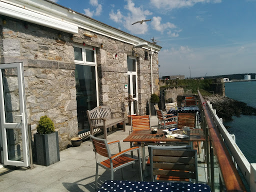 Read moreThe Corinthian is a quiet and exceptional stop for a coffee and cake when walking towards the Hoe along the Madeira Road footpath. Friendly bar staff with temperamental espresso bar for coffee. Delicious looking but few cakes available. From this vantage point you can survey the whole of Plymouth sound. Watching boat traffic of all types, paddle boards, sea canoes, jet skis to thru to multi masted yachts with spinnakers and out-boarded cats to fishing boats and ferries or ribs in and out of Sutton Harbour. We sat on the terrace looking out. We were delighted, sitting in the sun with the vista. Nice clean and uncluttered tables on the terrace. The terrace handrail obscures the view as it is exactly at eye level when sitting. The cappuccino and espresso coffee was a bit cool.. perhaps not using warmed cups from the machine top. I seem to have a single where expecting double espresso without sugar.. nice enough. Walnut and coffee cake a bit dry but tasty, blunted by the exception outward viewing action and lovely company. Thinking I could spend all day here sitting sipping coffee.. if only I'd had a no further things to do or a newspaper. Clean tidy toilets. Access corners and entrance slope probably difficult for wheelchairs...