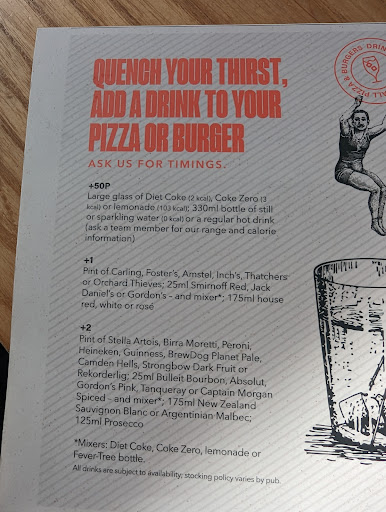 Read moreCame here to have a meal, a drink and watch the grand national. Ordered a pizza which is advertised with a drink. Asked for a mighty meat pizza and a single Jack Daniels and coke (which as you can see from the image, is included in the deal for an extra £1) The woman behind the bar took my order, sent it to the pdq machine and went to make my drink, it was then I realised that the charge was going though as £15.50 and not the £11.50 as advertised. When the member of staff presented my drink I queried the price, she explained that is not ringing through as part of the deal... I pointed out that it clearly states on the menu that the drink is included, I was then asked well what do you expect me to do with this drink? I asked for a thatchers gold instead if that was included in the deal, she said it was and then asked what I expected to do with the drink she poured, took the Jack Daniels and coke, sighed that I wasn't having the drink I ordered and poured the thatchers gold, when returning to me slammed it on the bar and took payment. I've been to this venue multiple times, and used to work for the company in multiple establishments, so I am surprised at the service which I received and that this issue hasn't already been flagged up to management. To say that I am disappointed in a stonegate experience is an understatement. I hope this issue will be resolved...