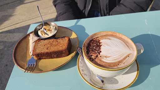 Read moreHad pulled pork baguette and vegan feta baguette. The bread was excellent, very fresh and tasty, one of the best baguettes I have ever had. However, we weren't so impressed with the fillings. The pulled pork was nice but too spicy. The onion chutney was interesting, but all the other ingredients (except the rocket that was fresh) tasted a bit artificial. Coffees: nice mocha and cortado. But, in the menu, there is no single espresso: why? What's the point of offering double espresso if there is no single espresso? The service is excellent: all very friendly and quick, especially very friendly, thank you for that! We sat outside, didn't have the chance to see the inside except for the time we spent ordering etc. however, all looks tidy and very clean from what we could see. Suggestion: please add parasols to the tables outside (at the back of the restaurants); the British sun is not so strong compared to the Southern European one - still, it can be uncomfortable to sit for a meal under even a cloudy sky during a warm summer day (especially because there as so many kids around). Looking forward to trying the soups and salads next time (maybe we are not so keen of...