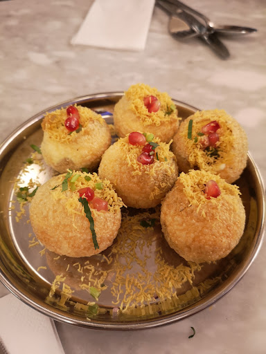 We had a small plate of Sev Puri which was recommended to us by the staff, I've never had anything like this before in an Indian restaurant, we were told to eat them whole (I struggled a bit with this as they were quite large!) I'm not 100% sure what the filling was but they tasted incredible, you can't visit Desi Cafe without trying these!