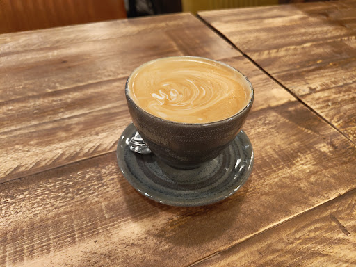 Read moreThis is quite a nice place - I like the layout, and the atmosphere. The chairs are a bit more comfortable than the average coffee shop chairs, there's plenty of space. The only thing that let it down for me was the coffee. I asked for an Americano. It came in a huge cup. Much bigger than a coffee cup. Obviously, if you make an Americano by adding hot water to a single shot of espresso in an enormous cup the result is a rather watery, unsatisfying cup of coffee that's basically hot water with a bit of coffee in it. We asked if this was a normal size coffee or a large, just to check. The woman said no, it's a standard size cup. Also, the sausage roll was big, but not very nice. It was like one of those slightly greasy ones you get in a service station. Disappointing, because this place should be great. The people were nice, the place was nice - just the coffee and the sausage...