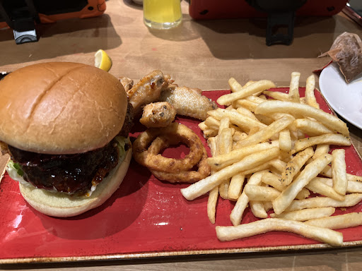 Ā Ā Ā Read moreWe seem to always be unlucky when we come here. The kids wanted to play and eat so seemed like a good choice at the time. When we came in alot of what we wanted on the menu wasn't available, I understand these things can happen but perhaps a sign on the door or a sign up would be better. Then alot of the sauces were unavailable for the chicken sizzler which is what we finally went with after the rest we wanted was unavailable. So my mum asked if we could have sweet chilli and the guy at the till said yes he could do that but didn't notify us that he would be charging for this which seemed ridiculous after everything else was unavailble. Anyway the food arrived the kids food was ok they ate it and the chicken skewers on peppers we're nice on ours but the chips were far and few on the plate we're cold and the onion rings we got with our adult meals were inedible. I would be embarrassed to serve that and I was insulted to receive that. They looked like they had been sat out for days. Noone came over to check if our meal was ok. My mum was wondering round trying to find someone to notify them of the onion rings so we could change them. After 10 minutes she went up to the bar in the end as there was noone else around and asked for more onion rings. Again they came and even the guy looked embarassed and said I don't know if these will be much better. They weren't. We had to then ask for our deserts 3 times, they came and all the ice cream was already melted, again we complained and we spoke to a lovely chap Brandan who was very apologetic and tried to help where possible. He bought out fresh deserts and the kids were happy. He was very helpful and friendly and gave us the review card to leave our experience of the day. Most the staff wondered round like zombies but Brandan was a bright and bubble character who wanted to help. It's a shame the food experience was so bad but the kids did enjoy playing in the play area. However we did want some drinks in the play area but the coffee machine was broken! We also bought a pass for the play area but noone asks when ordering about the pass for the discount so missed out on that to! Overall not the best experience, more of a headache...