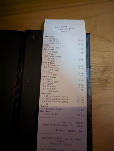 Read moreBooked here to enjoy a tasty curry and a conversation with relatives in a relaxed atmosphere. Fine when we arrived for our 6.30 reservation but just as our meal arrived so did a party of at least 40 people who crowded around the bar shouting at each other just a few feet from our table. A waitress tried to apologise for the noise and we think she said they were refusing to sit at their tables but she had to shout before we could hear her. Then the very rude and patronising assistant manager came over and said we should try a Thursday !!! The noise was intolerable so we asked for our meals to be boxed so we could finish them at home. I thought this place was a restaurant not a bar and I am disgusted at the total lack of any Covid precautions being taken and the lack of any control the manager seemed to have. None of my family or friends will ever eat at...