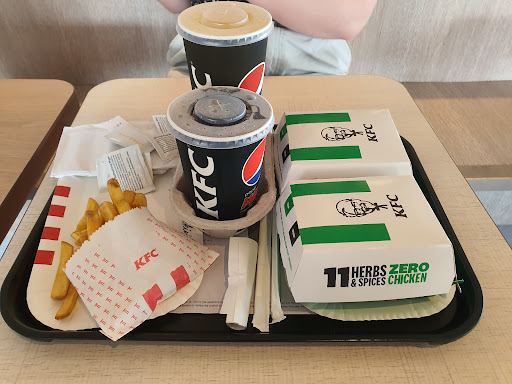 Read moreThis place has really gone downhill recently. We ordered a large meal for delivery last week, the food turned up with the gravy spilt all over the rest of the food, rather than try to complain through Uber we went to the store, they of course blamed the delivery driver and as we had no way to prove otherwise decided that tonight we would eat in expecting a much better service, how wrong we were! Firstly, my order was showing as ready to collect, stood for a good 5 minutes waiting, but the staff were more concerned with getting the delivey orders out than dealing with customers in the store, to the point that the bags waiting to go out were covering the screen detailing the eat in orders, when i pointed this out the staff were rude and dismissive. Upon receiving my food, the order was wrong, on checking, if you make changes to your order and then select large meal it resets everything to default so instead of coleslaw and a black coffee they tried to serve gravy and a Pepsi then when I pointed this out they tried to blame me (my wife confirmed she watched me customise the order). Anyway, accepted the gravy but asked for them to swap the Pepsi for a black coffee and went to eat the food. This was now cold as it had been sat on the side whilst they dealt with the delivery orders, starving by this point we ate it anyway, at least my black coffee will be hot I thought, nope, it wasn't even a black coffee, it was white, i hate white coffee. Finally, as to blaming the delivery driver for the previous poor service, having watched the staff packing the bags I can say with 100% certainty that this too was a staff issue, they were literally throwing the boxes of food in the bags without even a care as to who was watching them or what state it would be in once delivered. Such a shame as I used to love KFC but will definitely not be returning to...