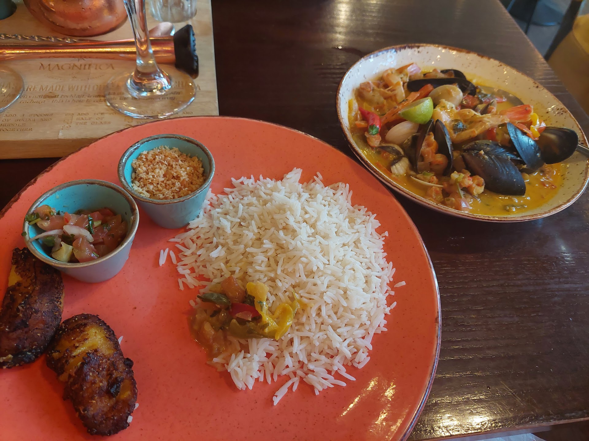 Very loud, couldn’t even hear the waitress speak to us, needs something lower than the ceiling, like hanging shutters etc to dampen the racket! Service variable, I gave up trying to flag down a server to order more drinks, we drank our first one whilst waiting for our food, I went to the bar, barmaid then related our order to our waitress, ugh. Disappointing having a £4 service charge added to the bill! It was automatically added, no choice to remove it! I couldn’t even tell the waitress as she would have struggled to hear me. Drinks were ok, but 50% crushed ice, the paper straws can’t handle it and become too soggy to drink through half way through the cocktail. We had to flag down our waitress to ask for more straws. They think they’re being eco friendly by not giving plastic straws, they’re not! The paper straws have a wax coating, so can’t be recycled. Food wasn’t good at all, chilli was bland, rice mediocre (no better than microwave rice which can be pinged at home), Mexican poppadum was rock hard, don’t eat it unless you want to break your teeth! Ximxim was revolting! Just 6 tiny crayfish the size of a little fingernail in it (hubby even mentioned he had never seen crayfish that small before). The chicken in it made me vomit…at the table! I have never done that before. First bite had a membrane on it, like trying to eat a thin condom, second bite had the cartilage running through it, which made me gag when I tried to eat it. The waitress offered me another dish, if they can’t cook something as simple as chicken, or a chilli, I certainly didn’t want anything else! Obviously clueless cooks in the kitchen. This was removed from my bill fortunately. We certainly won’t be eating at a Las Iguanas ever again, ruined hubby’s birthday. Disgusting food at expensive prices with poor service in a deafening din. Plenty of nice places to eat in Gunwharf fortunately. If you value your stomach, and your ears, this is a...