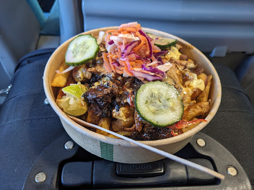With food in head I headed to catch my train. Once on board (and safe from seagull attacks), I dug in. You can tell the chicken has been marinaded for over 48 hours (as the menu states this is a minimum for them) - Paired with a proper banging scotch bonett sauce, my jerk box made for an intense, but exciting experience since I never really tasted jerk this good. The chips and slaw complemented the dish, and I was glad to get a few pickles too.