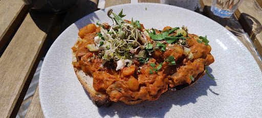 This place is a true gem in Portsmouth. At the moment the only fully vegan restaurant in town. The particularity about it is that it offers freshly made seasonal food with a menu that changes. The food is absolutely delicious. I had the aubergine with beans on a toast dish (not sure this was the exact name as per the menu) to eat in and had macaroons and kale chips for takeaway. I loved everything, the food is very tasty and feels really healthy. The place looks cute and is very tastefully decorated. It has several levels and lots of space to choose from, whether inside at ground level, or at the terrace. I really liked the terrace space, it is great for sunny, hot weather. It was my first time in this place, so I wasn't aware of how the service works and perhaps that is my only minor issue about the experience. So the place was very busy, I queued as there was no one to consult with at that point, and when it was almost my turn I spotted the server and asked whether I should take a sit or order first. So, I discovered that the way it works is you first need to pick your table as you need to know your table number when you order, which you do yourself at the cashier/front of house. So then I left my spot in the queue to go upstairs, picked a table and then came back down to order. Only there was another, longer queue. I asked if I could order and was told I needed to queue, again. Thankfully, the other customers were understanding, otherwise I would have had to wait again, so a whole ordeal around ordering food. So that's the only thing that sort of surprised me, but it's just minor and now I know how it works for next time; and hopefully this will help orient others who would be visiting for the first time like me. Other than that, it's a fantastic place and I cannot wait to come back and try...