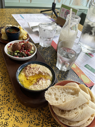 There is a tapa like menu! I am a huge fan of ordering small sample plates and this place delivers. I had falafels which were perfect, papas fritas that had the best sauce, and hummus that I loved. The bread was warm and crunchy. The food I had here was really good all the times I’ve went. I’ve also had iced coffee here which was delicious - I just drank it too fast and forgot to photograph it.