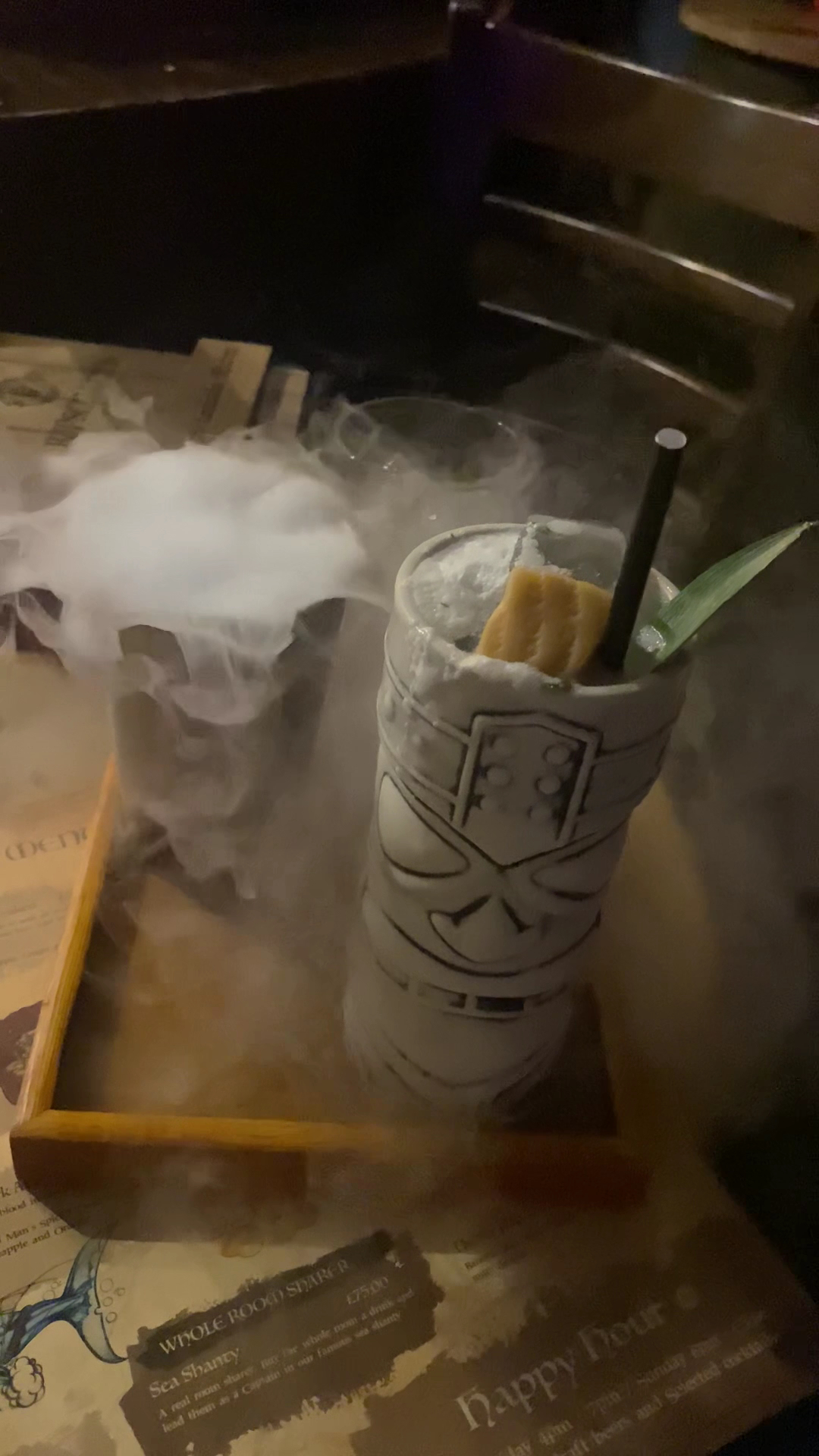 You can work your way through the entire cocktail menu because each one is served in a different glass and each one you get a different experience with. The staff here really are showmen when it comes to presenting the cocktails. I couldn't even tell you whaty favourite cocktail is because everyone is a different experience. There is a about 4 or 5 different tikis, an exploding barrel, a parrot, then you get to the sharing cocktails... There is a massive treasure chest you drink out of a fishbowl that is being engulfed by a Kracken and then there is also a massive shark head you drink out of as well and when they bring them out they really make a spectacle and show of it coming out so everyone in the bar is aware you're drinking a sharer. It was great fun when we got other tables drinking sharers as well because drink after drink after drink to each table was a different show, you only need one and everyone jumps on the sharer bandwagon.