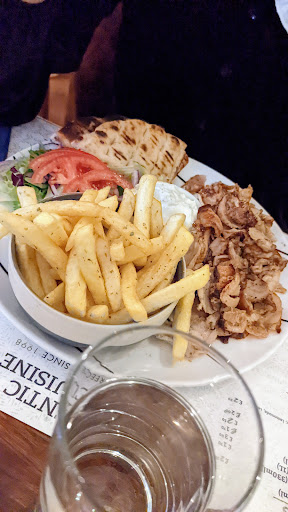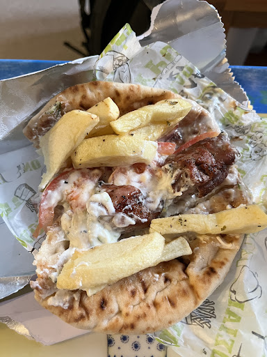 Ordered this evening via Uber. One of the gyros’ we received had the wrong meat (pork instead of chicken), we were missing aubergine dip from the wraps, our side of halloumi was missing and as per picture the wraps themselves were sparse and very disappointing! We contacted the restaurant who blamed their Wi-Fi (!!) for the incorrect order… we said we would come and collect the correct wrap and missing halloumi dish. When we got to the restaurant, the front of house guy (old tall guy with white hair) went to the kitchen to speak to the chef and upon asking for our food from the kitchen called my friend an expletive (Malaka) in Greek to them. He was so angry that he walked out and I informed the old guy why we were leaving, that he had just insulted my friend and that they were very rude. They are totally ignorant if they think they can swear about a customer in Greek (and in earshot) and then assume they don’t understand the language. Will not be returning. Avoid...