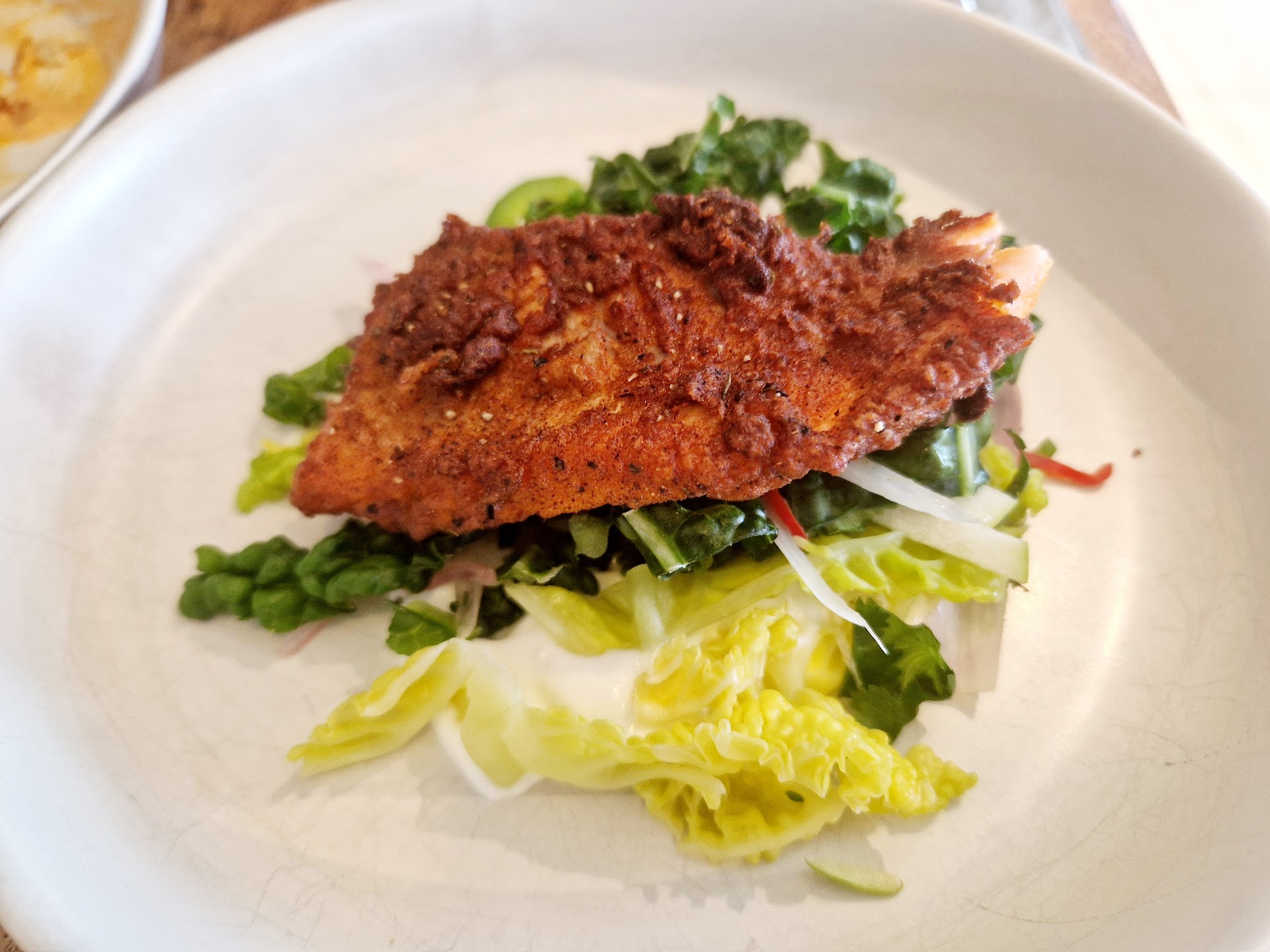 The fishcake was alright, nothing special, a bit too much potatoes in it maybe. The kentucky fried trout was dry, and the bed of salad under it was just boring. The red mullet was probably the best dish we had. Loved the salad on the side, I did find the fish dry, but I'm not sure if it could have been executed better, providing it is a flat fish with not much meat to it. The Caesar salad was lovely.