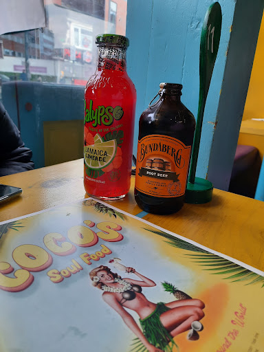 The drinks, which were imported bottled beverages, were different and refreshing. We chose a hibiscus-lemonade drink from Calypso and a root beer from Australia.