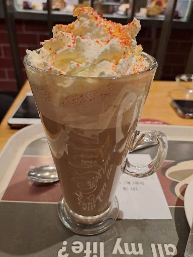 Yesterday at 4ish pm. The waitresses were attending their tasks with care from cleaning to serving brewes. The one at till/coffe tender was alwas smiling, complying with any special needs to accodommodate with care the customers request.