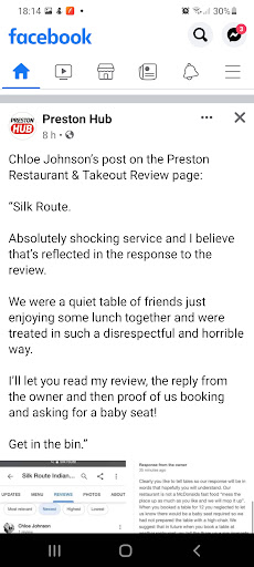 Read moreMyself and Son went to a Freddie Mercury tribute act. It was sold out. The place was packed. As people were being served and eating, some had even Finnish there dinner, we finally got our starter. After that my Son went out for a cigarette, to which when he came back said to me that someone outside has told him that Freddie has got stage fright and left.l. How funny and unbearable is that. I said this can't be true, no one has been to tell us this. Then our meal final arrive after a long wait. I truly believe that we were forgotten about. So then a Northern soul singer started doing his thing. A few people started to leave. As I don't blame them. After a few songs it was painful and pitiful to watch a very talented man trying to entertain people that were very disappointed. He then put a Freddie Mercury C.D on and sat down. I myself was very let down by the lack of information and change of artists. No one apologised. If I was told before dinner I would not have stopped. We left as soon as we were finished eating. I have emailed silk route to which I have had still no response. I have rang them, to which whom ever I was speaking to said that someone would be back in touch with me. But still no response. So all in all a very disappointed night. On the plus side even though we waited for ever for our food, it was...