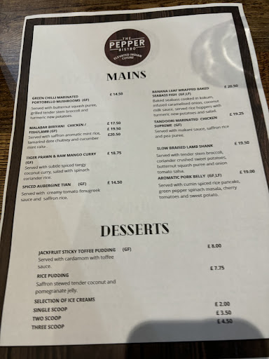 Ā Ā Ā Read moreJoice our host and manager of the restaurant is an outstanding host. Our menu was quite extensive having only recently opened, we chose a starter to share and a main course each. Details to follow. Plates are warmed the presentation is of the highest standard. Travanvore crispy chicken to start, outstanding in presentation, quality and taste. King prawns and raw mango was again well presented and full(and I mean full) of king prawns that were cooked beautifully. My wife had the Sea bass wrapped in Banana leaves, served with a rich spiced sauce, a rice hopper and turmeric potatoes and salad. We completed our dinner with a Jack fruit sticky toffee pudding with cardamom toffee sauce. We both have been very pleasantly surprised by the delicious meal in very pleasant surroundings. This is something that we have needed in this area for quite some time. It is NOT your run of the mill curry house!!! If thatās your thing then this is not for you, however should you want a dinning experience with a fusion of Indian and Mediterranean style cooking this IS FOR YOU. We wish the team all the best and will...